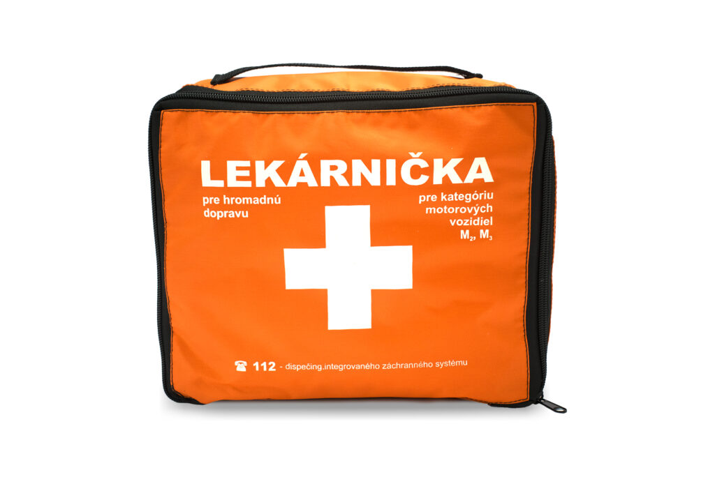 Zloženie lekárničky pre poskytnutie prvej pomoci v cestnej doprave zodpovedá vyhláške MD SR č.134/2018. Lekárnička je určená pre hromadnú dopravu osôb, pre kategóriu motorových vozidiel M2, M3, do 22 miest na sedenie ( nad 22 miest na sedenie musia byť 2 lekárničky tohto typu ).